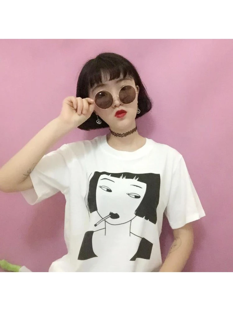 Smoking Girl Printing T Shirt Women Short Sleeve Tee Tops Fashion Tumblr Grunge Tshirts Funny Graphic Aesthetic Shirt Clothes T Shirts Aliexpress